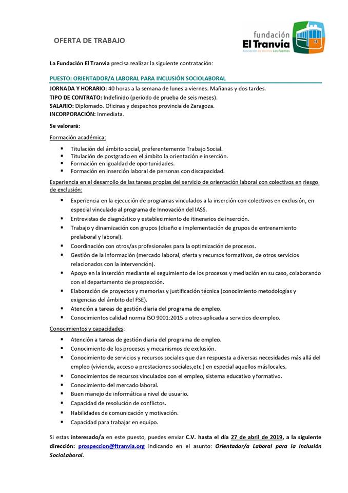 Asunto: Orientador/a Laboral para la Inclusión SocioLaboral