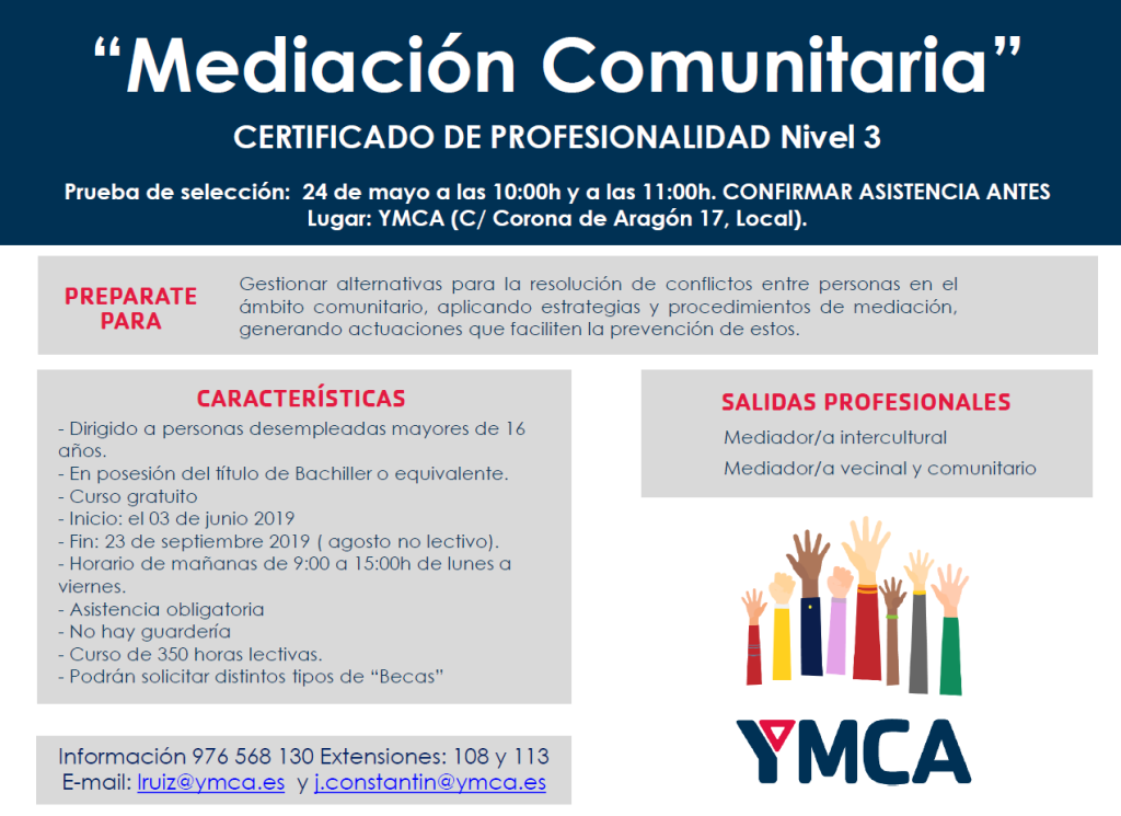 YMCA oferta formación certificado profesionalidad nivel 3 «Mediación Comunitaria»